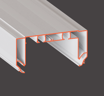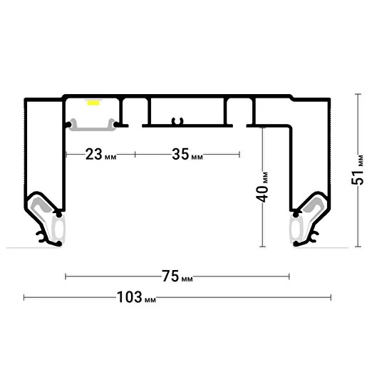Профиль GARDINA2 05 для изготовления скрытых карнизных ниш с двумя дорожками для установки штор и гардин. С подсветкой (паз под светорассеивающую вставку и полка под светодиодную ленту). Для гарпунной системы крепления полотна, с пазом под разделительную вставку.