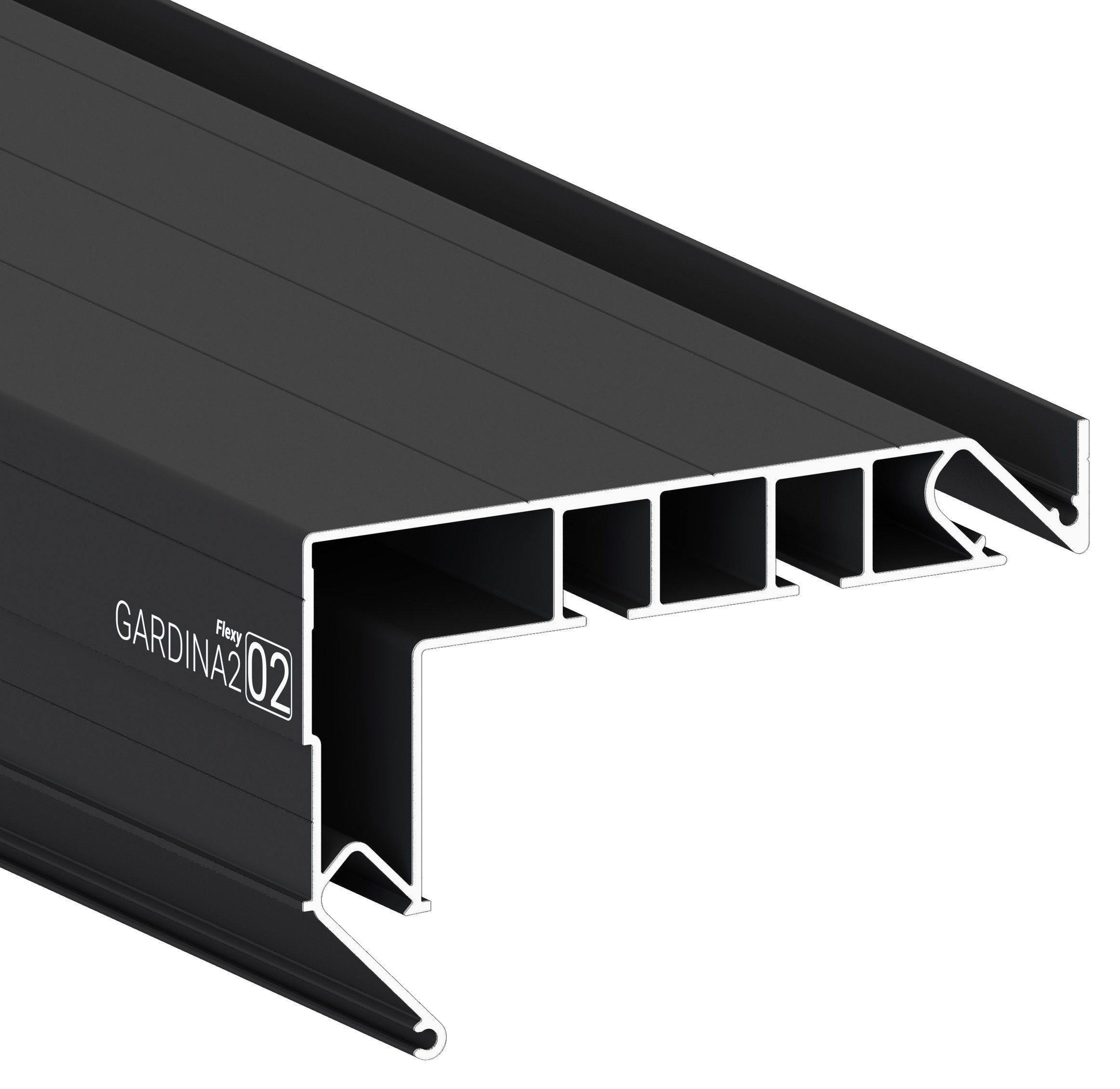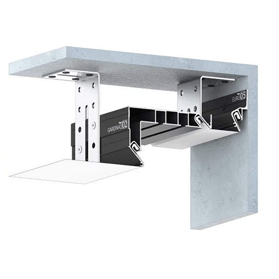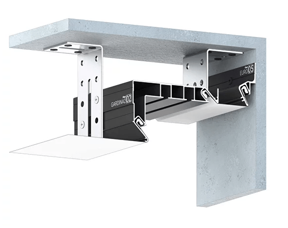 Профиль Flexy GARDINA2 02 для изготовления скрытых карнизных ниш с двумя пазами для установки штор и гардин. Для гарпунной системы крепления полотна с боковой заправкой.