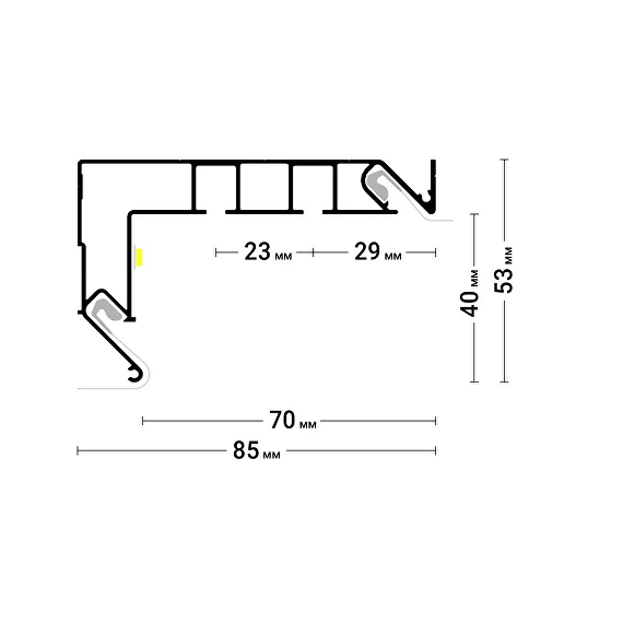 Профиль монтируется на стену, образуя скрытую нишу для установки карниза, что позволяет создать эффект невидимой крепежной системы , а также имеет различные размеры, что позволяет создавать карнизные ниши для штор и гардин разных длин и типов.