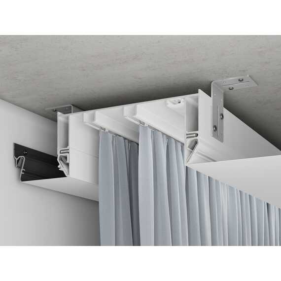 Глубина карниза 54 мм создает эффект парящих штор и скрывает крючки.