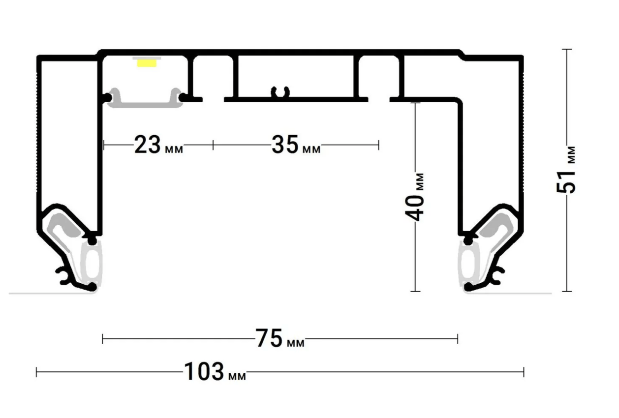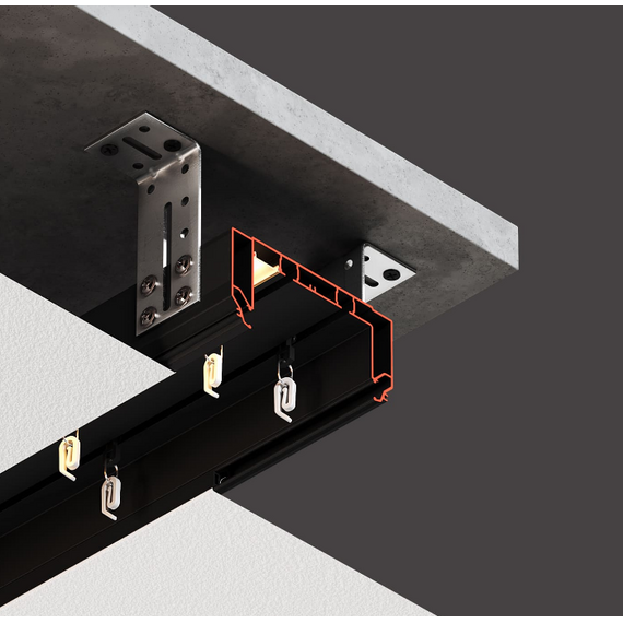 Профиль Flexy GARDINA2 05 для изготовления скрытых п-образных карнизных ниш с двумя пазами для установки штор и гардин. С подсветкой. Для гарпунной системы крепления полотна.