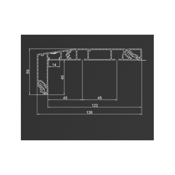 Профиль для изготовления скрытых карнизных ниш с двумя пазами под установку штор и тюля. Увеличенная глубина и расстояние между камерами 45 мм обеспечивают плавный и бесшумный ход бегунков. Пазы под гарпун закрываются PVC-вставкой.