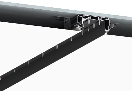 - Крепление Саморезами или дюбелями к потолку через монтажные уголки. Шаг крепления не более 1,5 м.