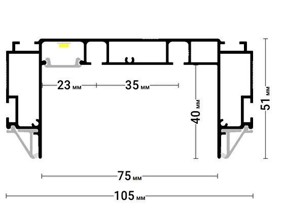 Профиль БЕЛЫЙ Flexy IZI KARNIZ2 05 для изготовления скрытых п-образных карнизных ниш с двумя пазами для установки штор и гардин. С подсветкой.