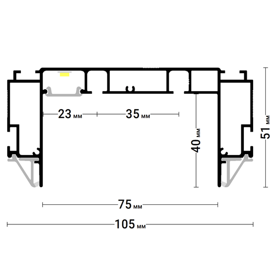 Профиль Flexy IZI KARNIZ2 05 для изготовления скрытых п-образных карнизных ниш с двумя пазами для установки штор и гардин. С подсветкой.