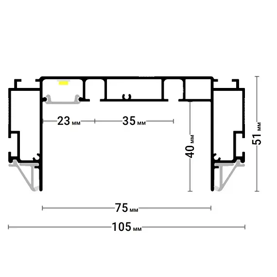 Профиль ЧЕРНЫЙ Flexy IZI KARNIZ2 05 для изготовления скрытых п-образных карнизных ниш с двумя пазами для установки штор и гардин. С подсветкой.