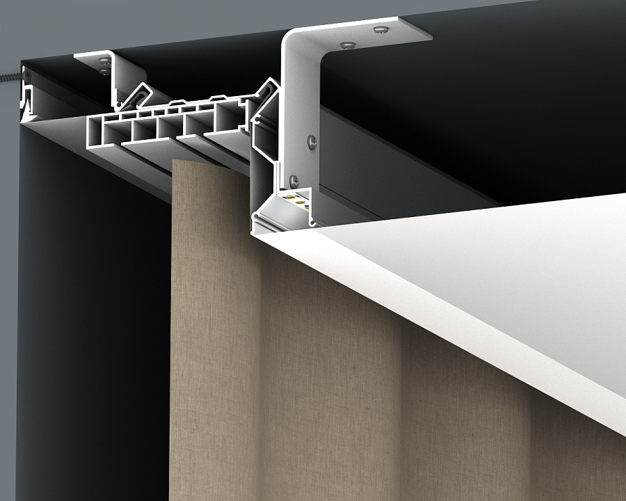 - Установка дополнительного освещения в специальный паз, для подсветки штор.