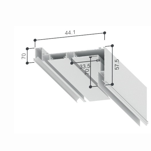 Белый алюминиевый профиль для создания двухрядного скрытого карниза с креплением тканевого натяжного потолка в разных плоскостях.