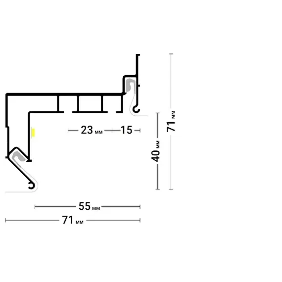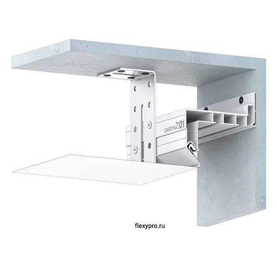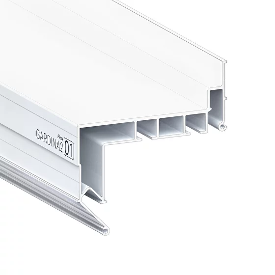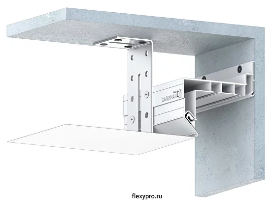 Профиль Flexy GARDINA2 01 для изготовления скрытых карнизных ниш с двумя пазами для установки штор и гардин. Для гарпунной системы крепления полотна с нижней заправкой.