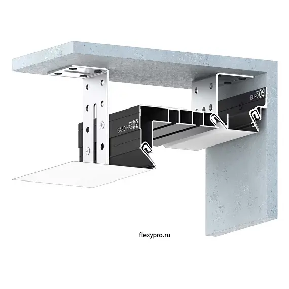 Профиль Flexy GARDINA2 02 (профиль ПФ 8048-GARDINA2 02) для изготовления скрытых карнизных ниш с двумя пазами для установки штор и гардин.