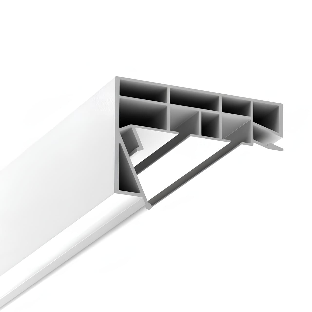 Профиль ПК 15 в исполнении ПВХ используется для изготовления ниш под карниз на потолках ПВХ.
