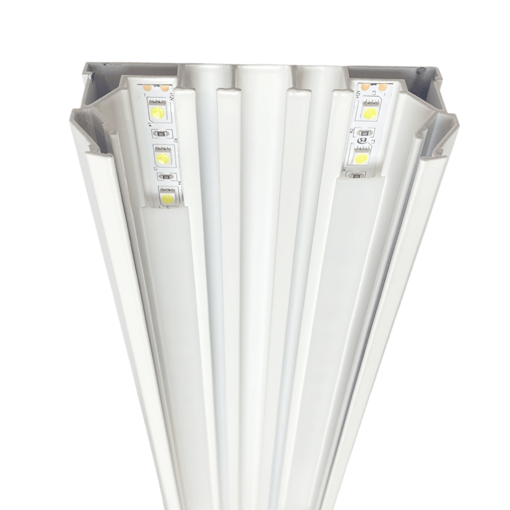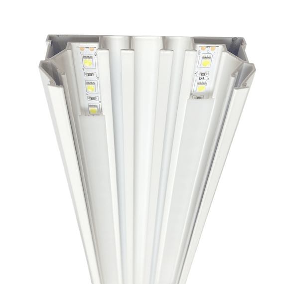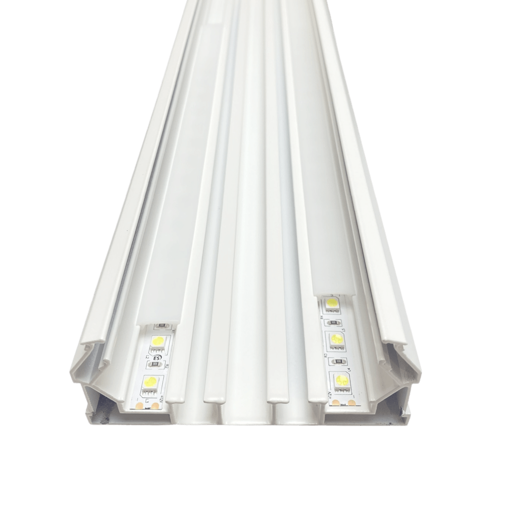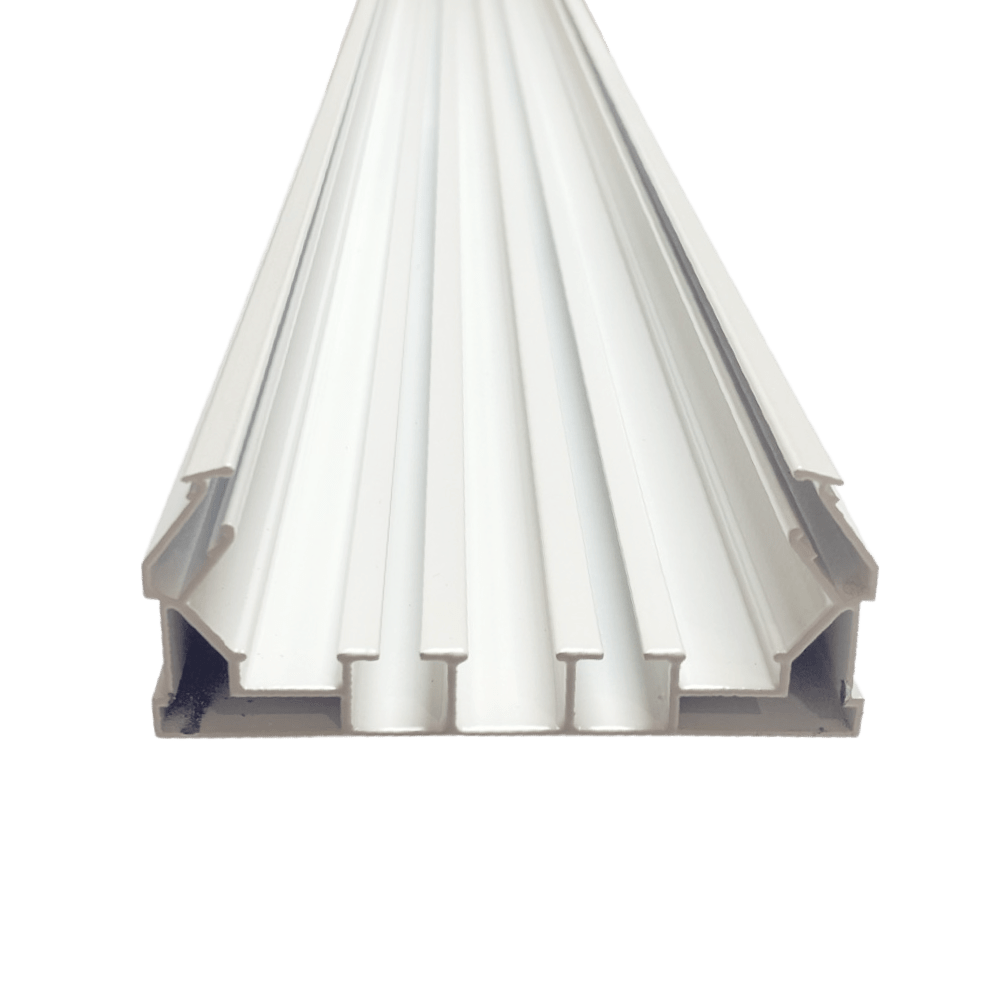 В этом профиле есть специальный паз для установки светодиодной ленты, а также рассеивающая вставка, которую можно приобрести отдельно. Кроме того, есть вставка для гарпунного паза, которая позволяет закрыть технический зазор и создать эстетически приятный вид.