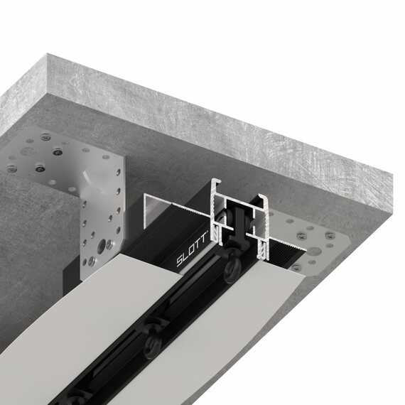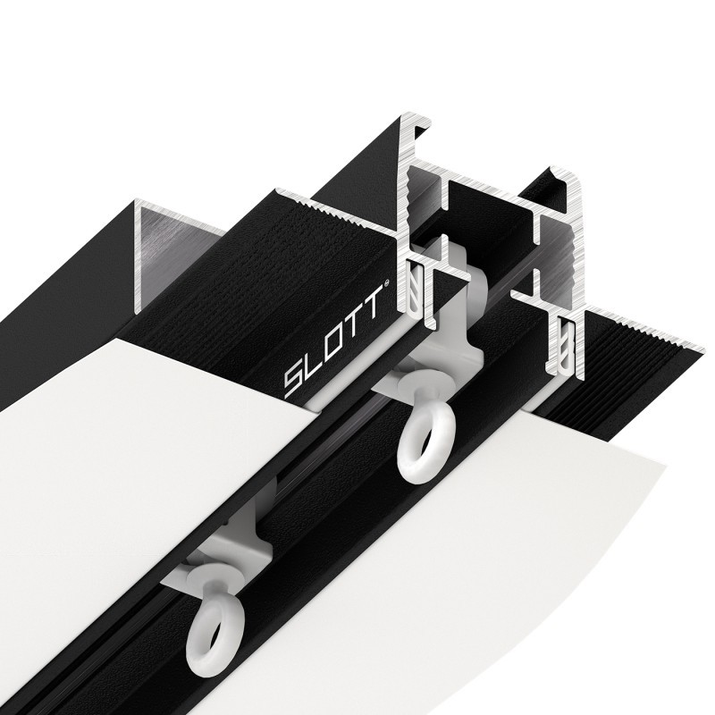 Система SLOTT Motion – это система карнизов для штор, которая полностью монтируется в запотолочное пространство и позволяет скрыть технические элементы механизма открытия и закрытия штор без создания специальных ниш. Визуально карниз выглядит как «прорезь» в потолке шириной 17 мм, в которой расположены крючки крепления штор. Основанная на узле SLOTT карнизная система SLOTT Motion гармонично и легко монтируется в любые виды натяжных потолков (ПВХ, ткань). А специальные «крылья» карнизного профиля SLOTT Motion позволяют смонтировать его и в гипсокартонные потолки. Базовой версией карнизной системы SLOTT Motion является «механическая», предполагающая открытие и закрытие штор вручную путем перемещения шторы за полотно.