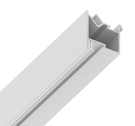 Это двусоставной профиль. Первая часть профиля крепится через уголок к потолку. Нижняя часть крепится к верхней на саморезы. Наличие демпферного узла на нижнем профиле позволяет устанавливать систему как в ПВХ, так и в тканевые полотна.