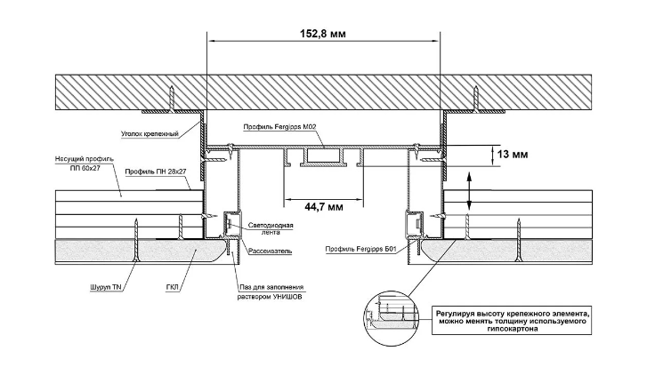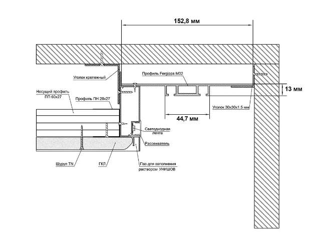 Профиль М 02 белый 3,2м Скрытый карниз 2х рядный FERGIPPS