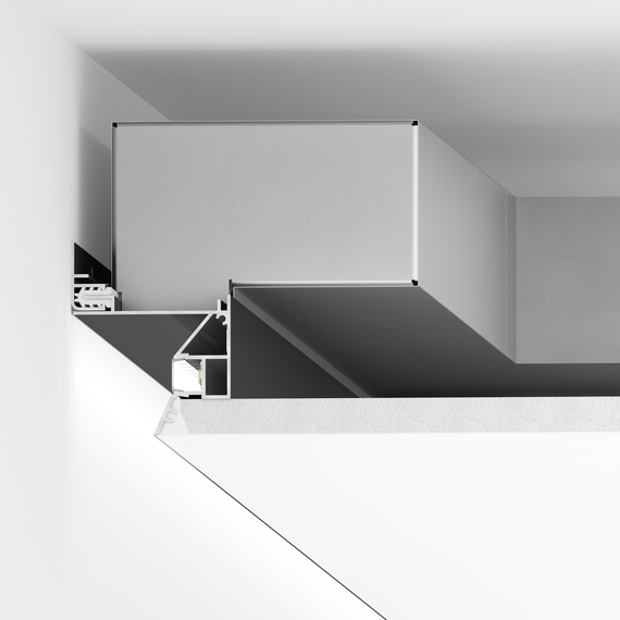 Профили полностью совместимы между собой и позволяют закрыть 99% потребностей при монтаже потолков из гипсокартона. Теневое примыкание, парящий потолок, карнизные и вентиляционные системы.