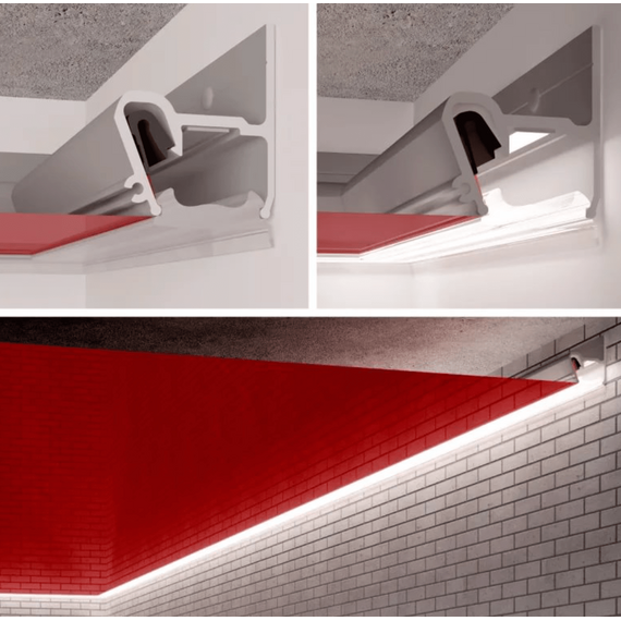 Профиль Alteza Respect-ST для монтажа натяжных потолков с эффектной контурной подсветкой по периметру.