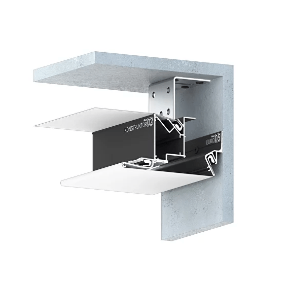Стеновой профиль Flexy EURO 02 с теневым зазором для натяжных потолков с гарпунной системой крепления полотна.