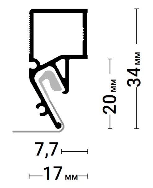 Потолочный профиль Flexy EURO 06 с теневым зазором для натяжных потолков с гарпунной системой крепления полотна. Теневой зазор составляет 7,7 мм.
