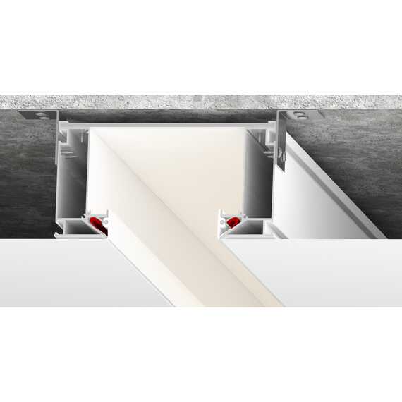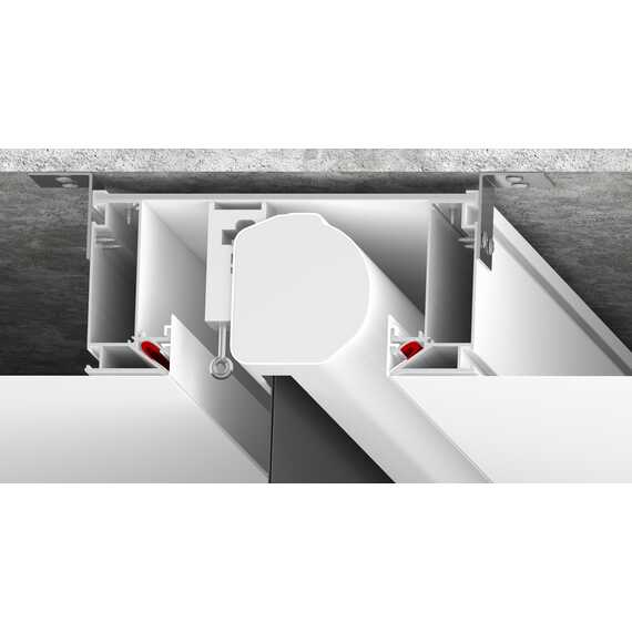 5. Скрытый трек: Шинопровод Track 30 LumFer устанавливается в нишу и крепится к композитному материалу. Таким образом шинопровод и крепление светильника максимально скрыты. Ниша бывает черного и белого цвета. В специальные пазы с двух сторон профиля устанавливается светодиодная лента. Конструкция профиля предусматривает фиксацию полотна при помощи гарпунной системы крепления. Паз для фиксации гарпуна закрывается маскирующей вставкой ПВХ черного или белого цвета.