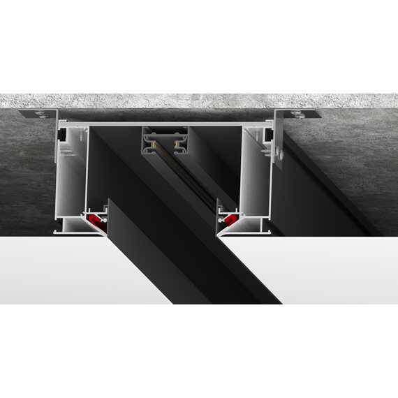 Данную систему освещения необходимо устанавливать, когда мы хотим максимально скрыть шинопровод и крепления светильников.