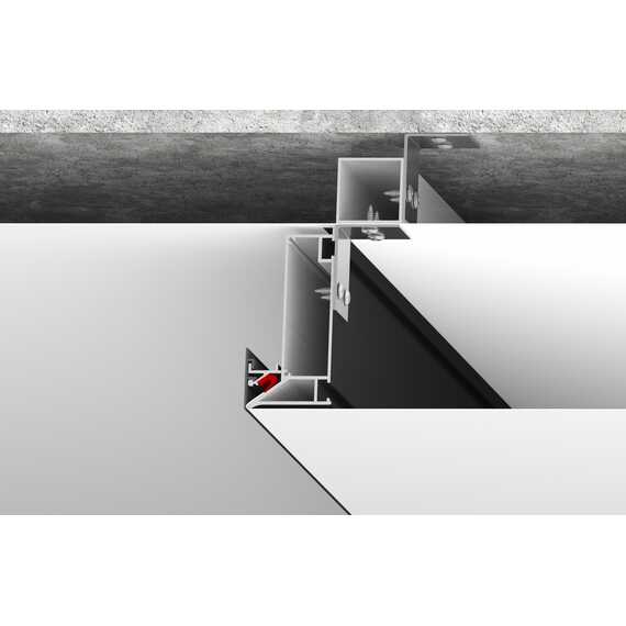 Применяется для организации скрытой ниши, с установкой механизмов электрокарниза или экрана проектора. Профиль крепится к потолку при помощи анкерных уголков.