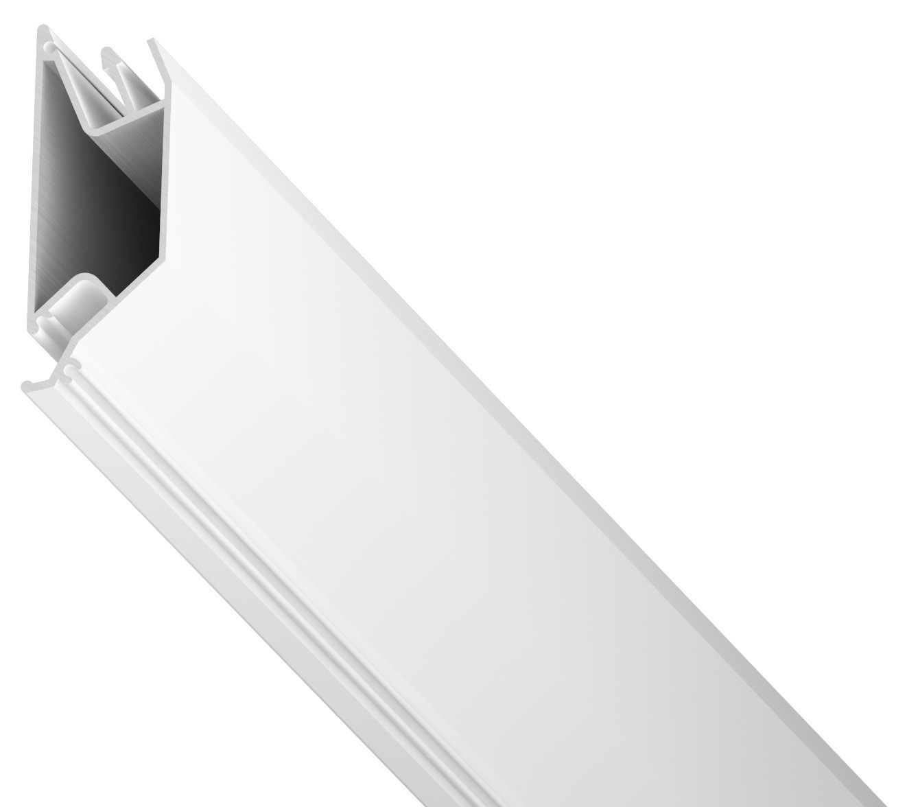 Переход уровня LumFer PU60 – это алюминиевый профиль, окрашенный в белый или черный цвет, предназначенный для изготовления перехода уровня с видимой вертикальной частью профиля. Таким образом мы имеем возможность выполнять прямолинейный и криволинейный переход уровня с вертикальной частью черного и белого цвета. Конструкция профиля предусматривает возможность фиксации верхнего и нижнего уровня полотна при помощи гарпунной системы крепления. Паз для фиксации гарпуна нижнего уровня закрывается разделительной вставкой
