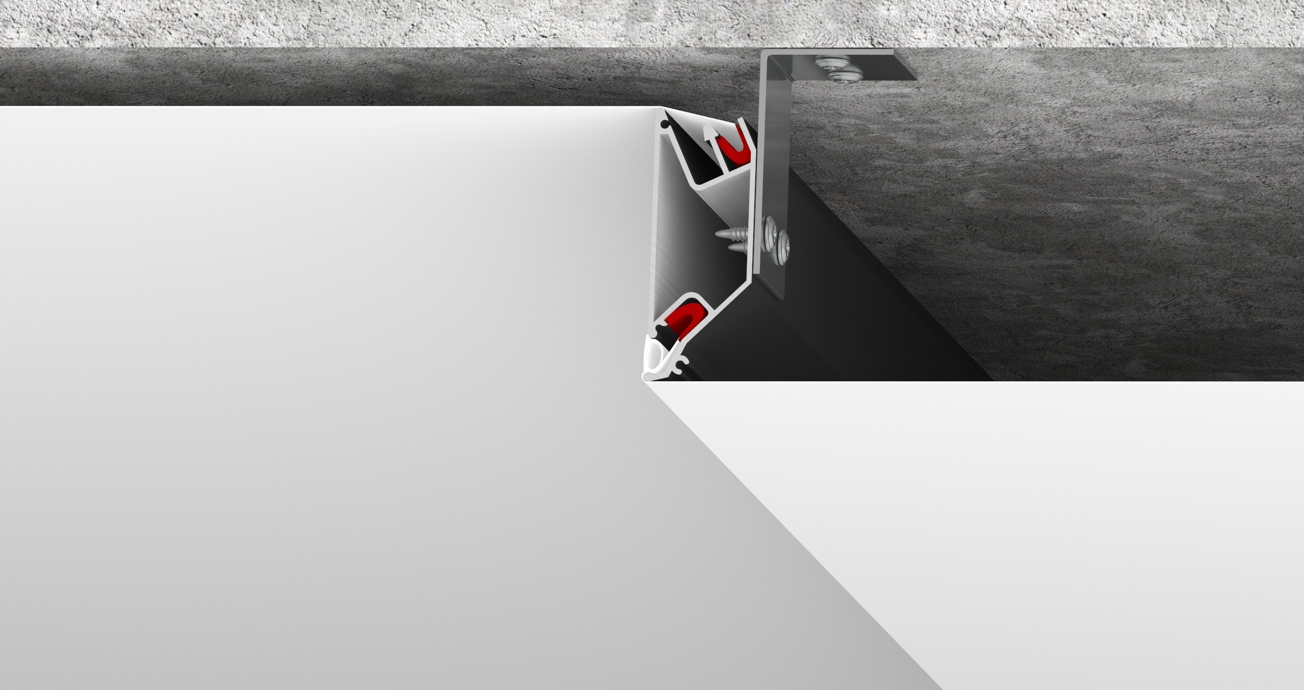 Переход уровня LumFer PU60 – это алюминиевый профиль, окрашенный в белый или черный цвет, предназначенный для изготовления перехода уровня с видимой вертикальной частью профиля. Таким образом мы имеем возможность выполнять прямолинейный и криволинейный переход уровня с вертикальной частью черного и белого цвета. Конструкция профиля предусматривает возможность фиксации верхнего и нижнего уровня полотна при помощи гарпунной системы крепления. Паз для фиксации гарпуна нижнего уровня закрывается разделительной вставкой