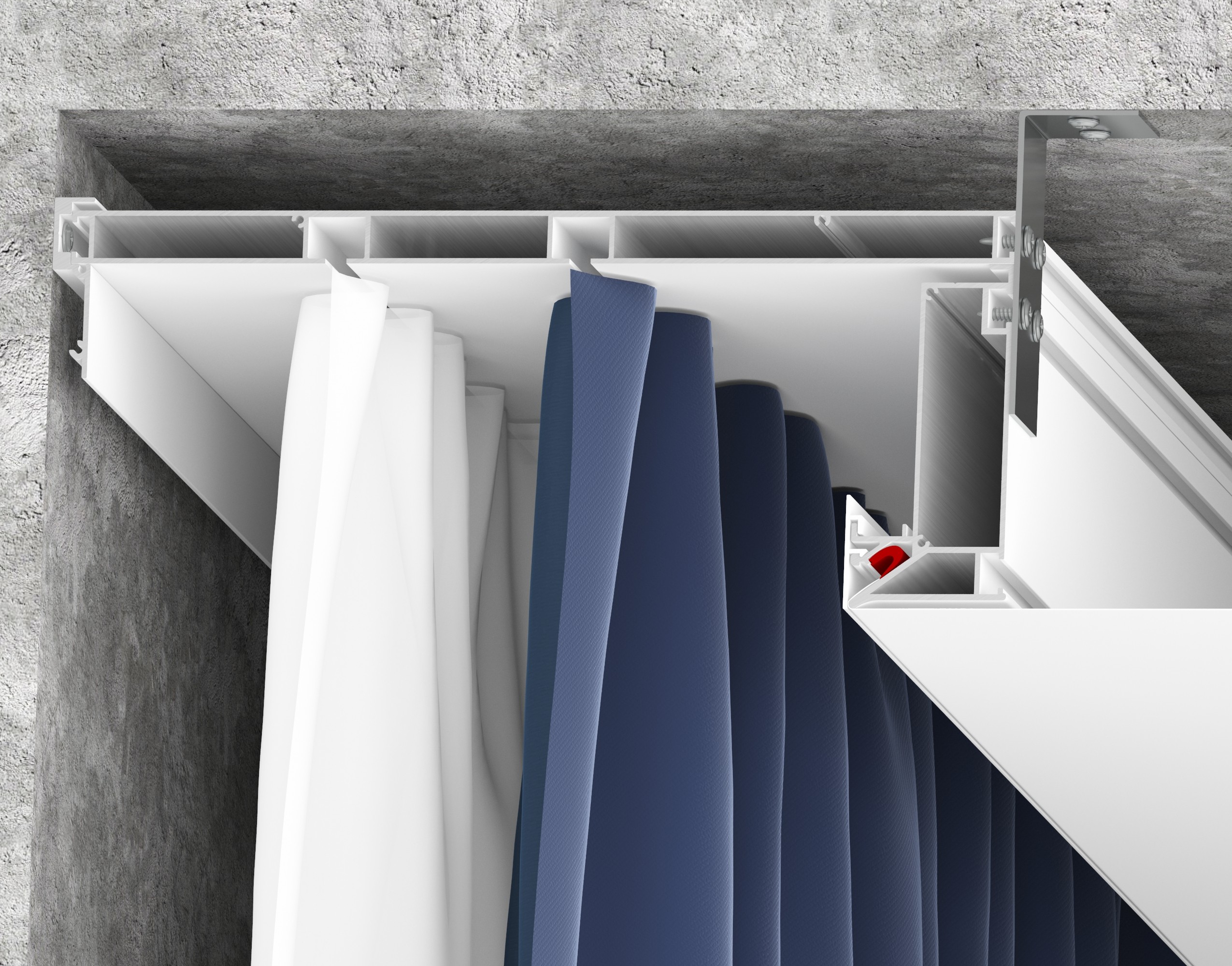 - За счет теневого держателя за карнизом может располагаться теневая зона.