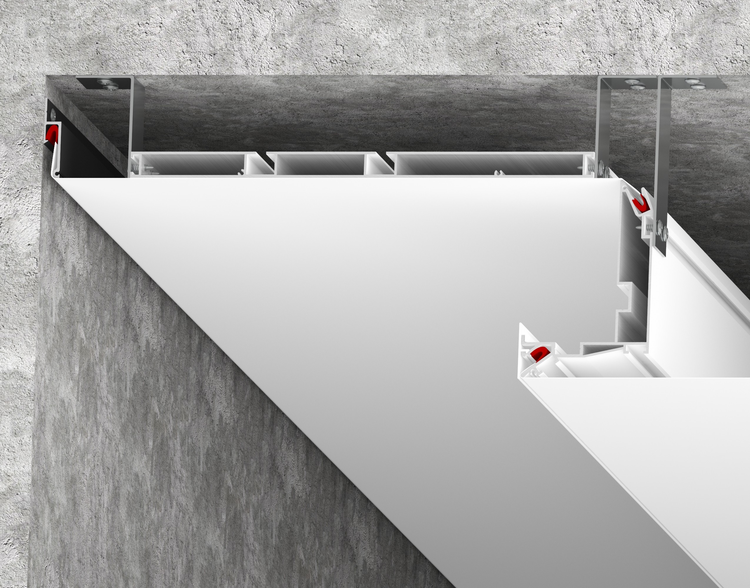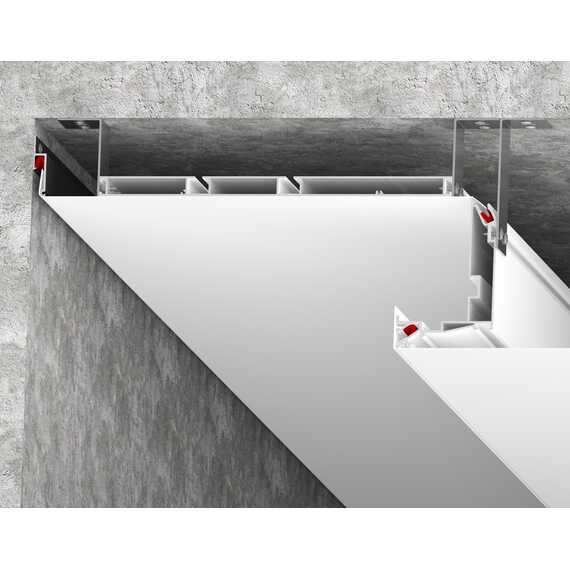 Может выступать как самостоятельное решение в виде 2-ух рядного карниза, при монтаже накладным способом в подготовленную для этого нишу, а также совместно с другими профилями LumFer, а именно: