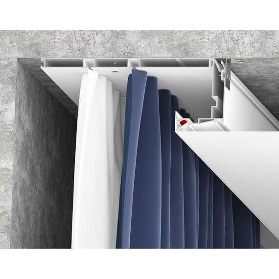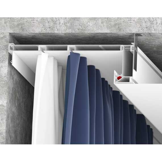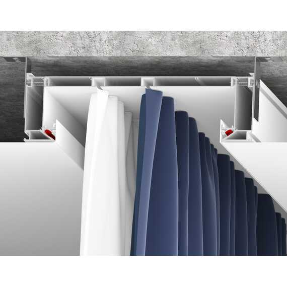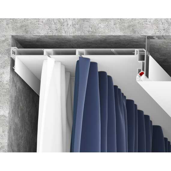 Профиль имеет оптимальную ширину и расстояние между (дорожками для крепления) рядами для крючков, чтобы складки на шторах формировались правильно, вне зависимости от их плотности и материала изготовления.