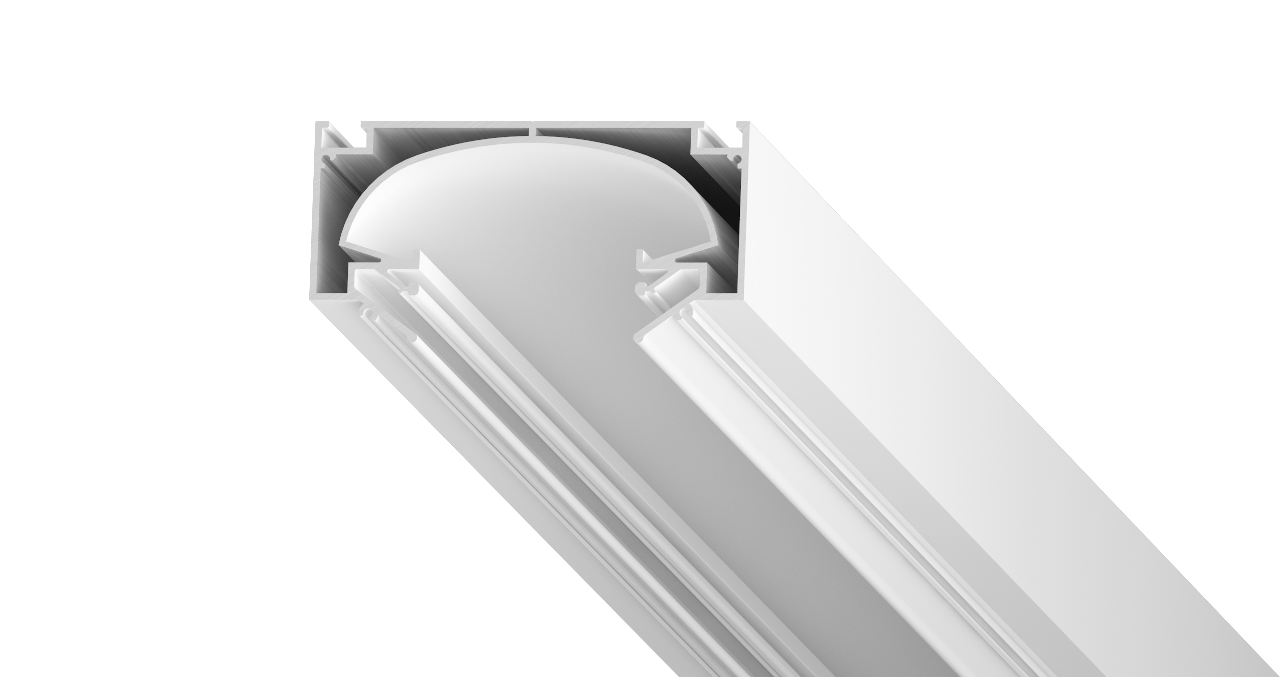 - Световой Туннель – современное решение, в котором используется отраженный свет. За счет формы профиля в виде туннеля световой поток распределяется с максимальной эффективностью, что позволяет использовать данное решение как основной источник света. Конструкция профиля предусматривает фиксацию полотна при помощи гарпунной системы крепления. Паз для фиксации гарпуна закрывается маскирующей вставкой ПВХ.