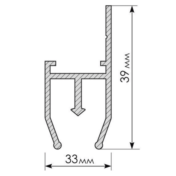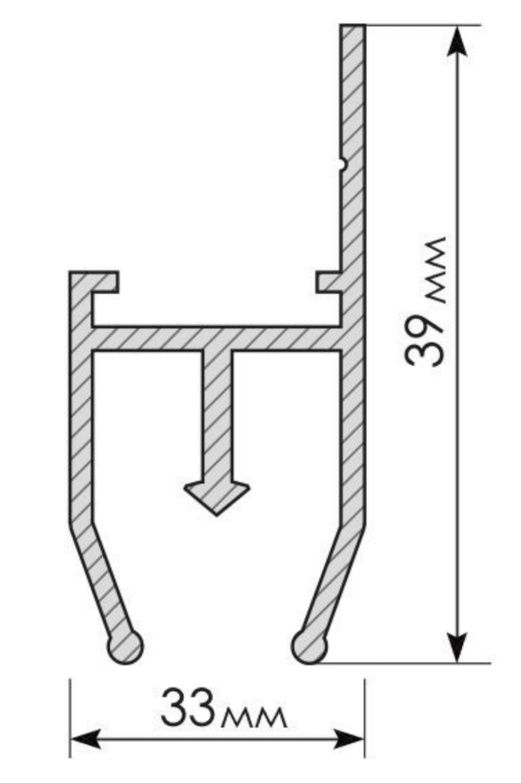 Разделительный профиль. Расположение монтажной полки не создает теней на светопрозрачном полотне при использовании внутренней засветки.