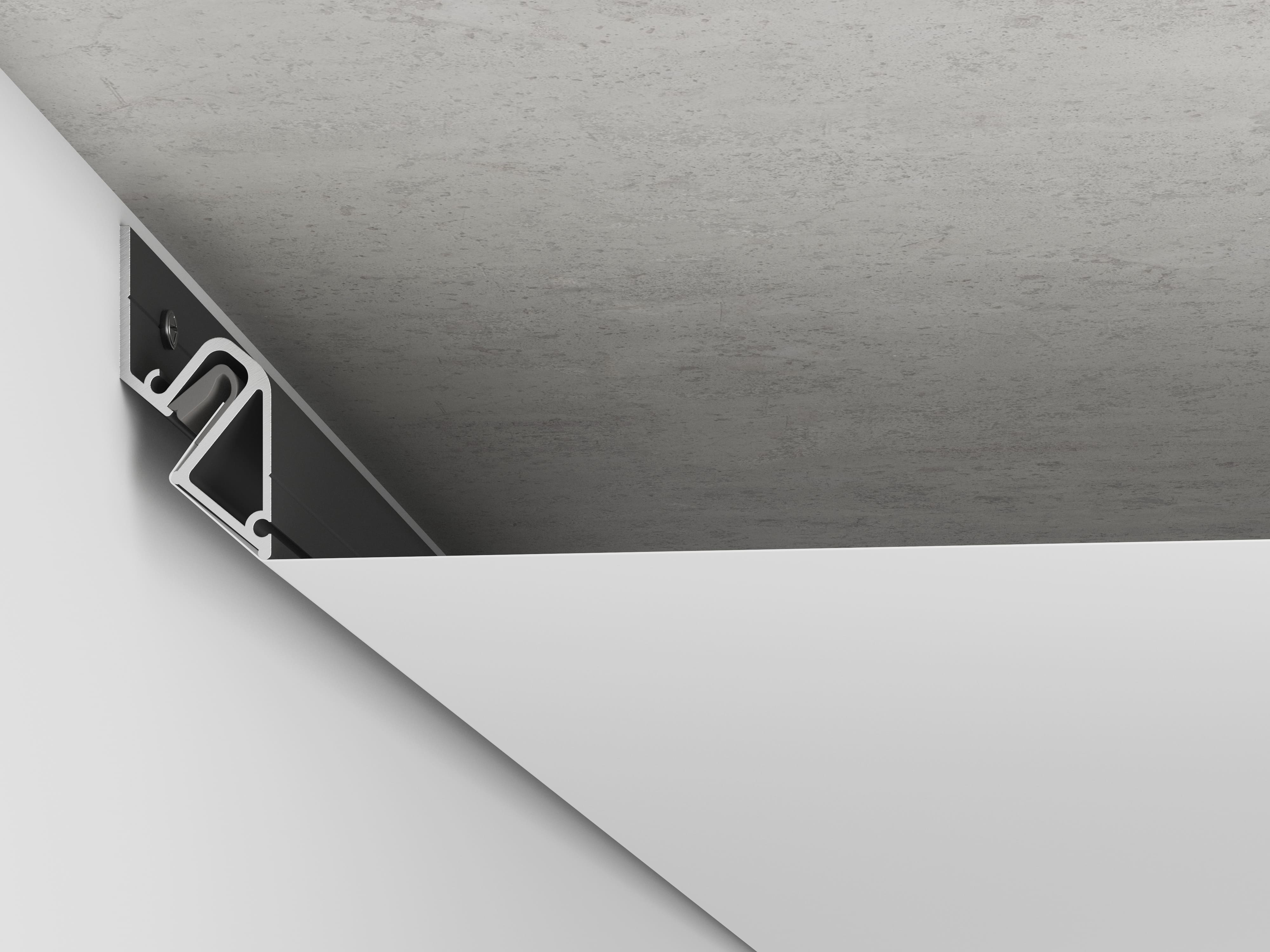 Профильная система DARK X представляет собой новейшее решение в области натяжных потолков, характеризующееся уникальным уклонно-теневым примыканием. Это инновационное направление фигурно-теневых примыканий, которое устанавливает новые стандарты в индустрии натяжных потолков, обеспечивая эстетичный и современный внешний вид.