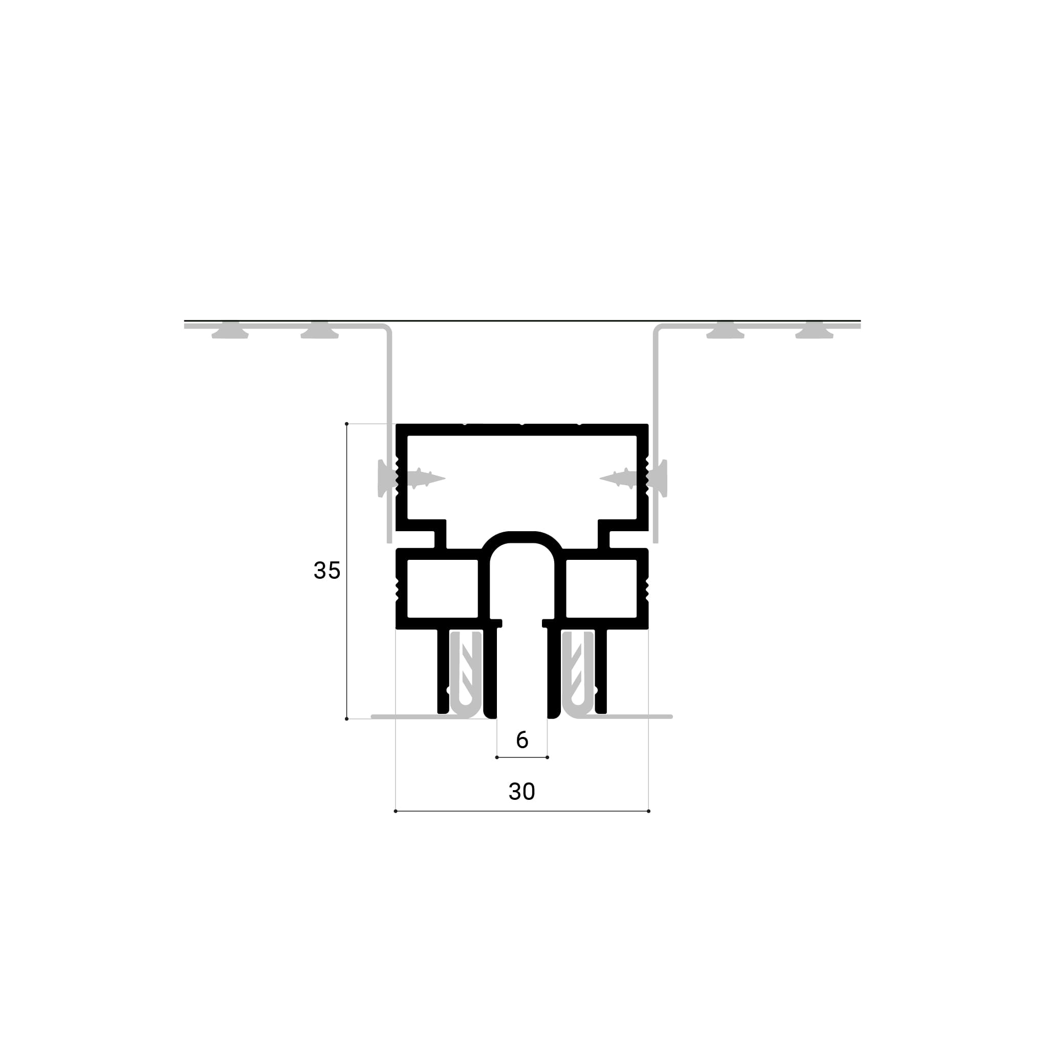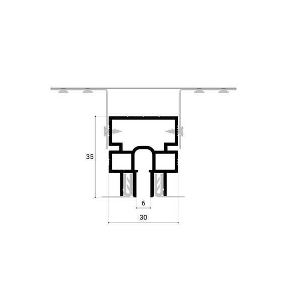 Теневой разделитель SLOTT R предназначен для создания четкого и аккуратного теневого шва в месте соединения двух полотен. Профиль SLOTT R оснащен специальной демпферной системой, что делает его особенно устойчивым и удобным в установке тканевых и ПВХ полотен. Он идеально сочетается с другими теневыми профилями, такими как EuroKraab, что позволяет использовать его в различных дизайнерских решениях и архитектурных проектах. Профиль доступен в черном цвете, что придает потолкам современный и стильный вид.