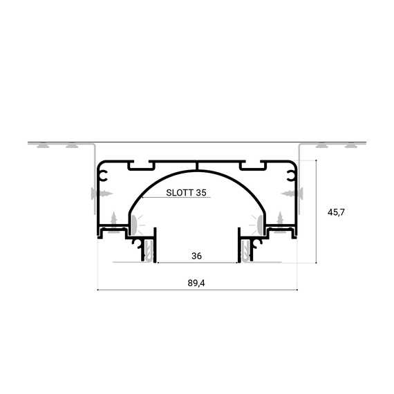 SLOTT 35 — это нишевая световая линия открытого типа, разработанная для создания современного и минималистичного освещения в интерьерах. Особенностью этого профиля является его открытая конструкция без рассеивателя, что придаёт световой линии уникальный и стильный вид. Видимая ширина линии составляет 35 мм, что обеспечивает яркое и равномерное освещение. Профиль поставляется в комплекте с демпфером, что обеспечивает лёгкость установки и стабильность конструкции. Идеально подходит для использования в натяжных потолках, позволяя создать скрытые световые линии.