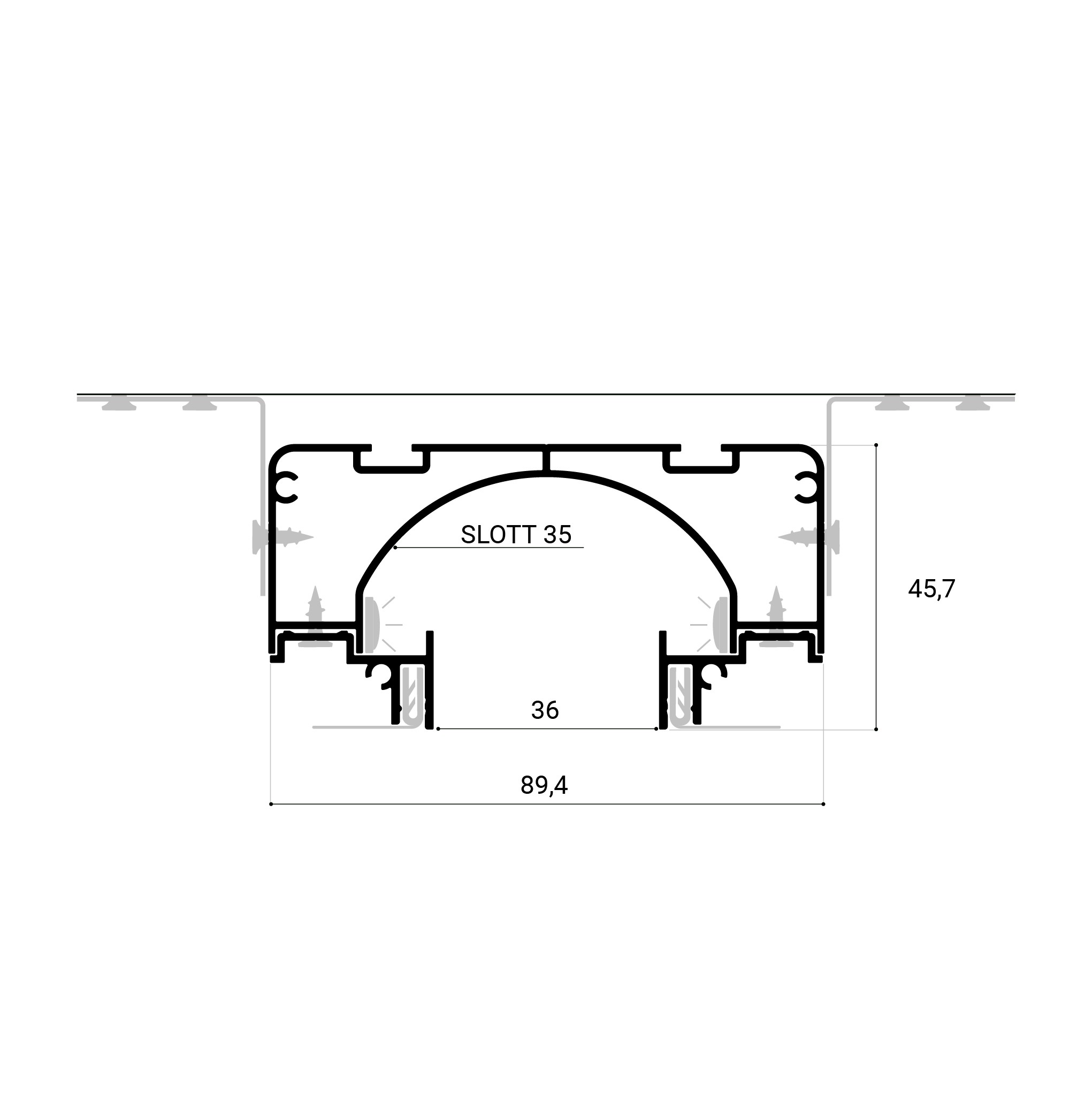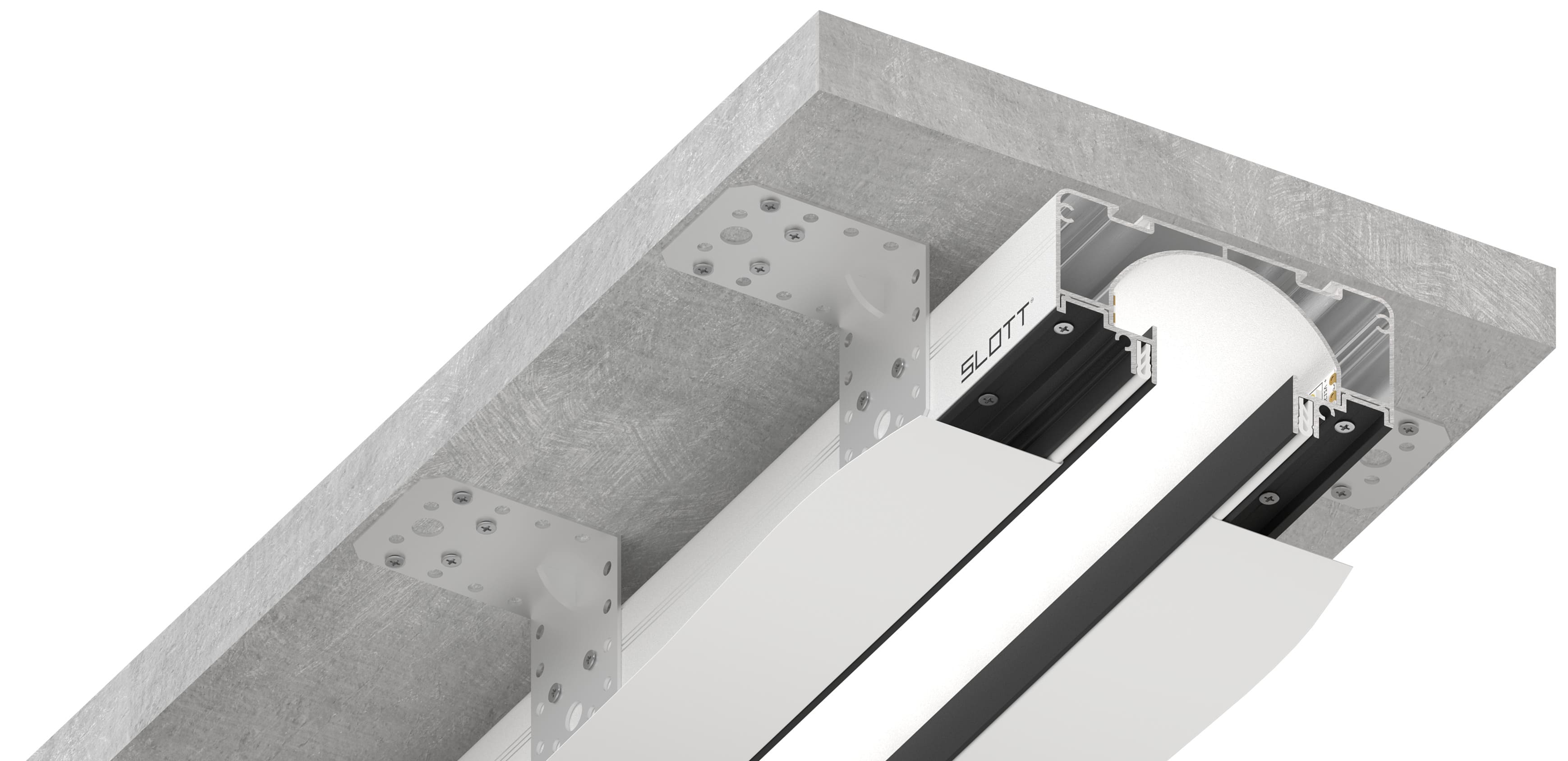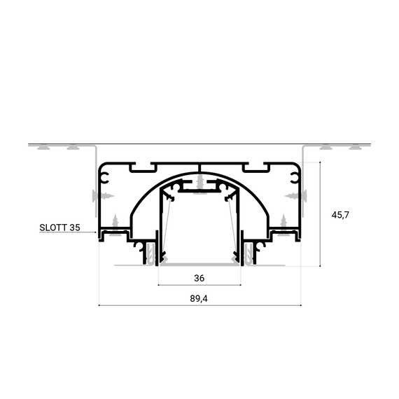 SLOTT 35 — это нишевая световая линия открытого типа, разработанная для создания современного и минималистичного освещения в интерьерах. Особенностью этого профиля является его открытая конструкция без рассеивателя, что придаёт световой линии уникальный и стильный вид. Видимая ширина линии составляет 35 мм, что обеспечивает яркое и равномерное освещение. Профиль поставляется в комплекте с демпфером, что обеспечивает лёгкость установки и стабильность конструкции. Идеально подходит для использования в натяжных потолках, позволяя создать скрытые световые линии.