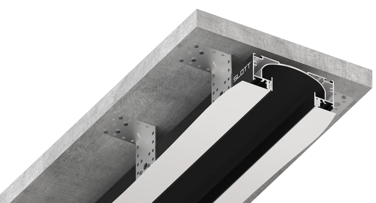 Чёрный Slott предназначен для размещения в нём дополнительного оборудования, такого как трек-систем, светильники L31/L61 или точечные.