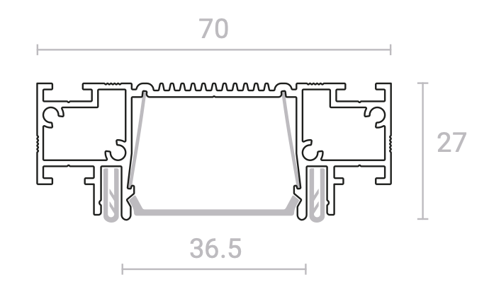 Профильная система для создания основного освещения в помещении с максимальной высотой 27 мм.