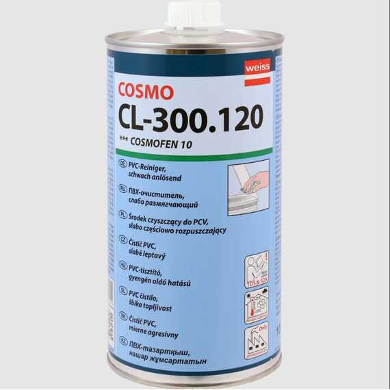 Очиститель слаборастворимый Cosmofen 10 применяется для чистки ПВХ поверхностей в качестве слабо растворяющего средства, для очистки и подготовки поверхностей к склеиванию. Очищает непрозрачные пластиковые поверхности. Удаляет маркировки с профиля белого ПВХ и сильные загрязнения с окон ПВХ.