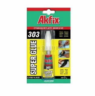 Клей Akfix 303 используется для быстрой фиксации между собой деталей из кожи, пластика, дерева, металла, резины и керамики. Перед нанесением клея рекомендуется очистить поверхность от мусора и обезжирить её. После этого нужно нанести клей и крепко сжать детали между собой. Дозатор обеспечивает точное распределение состава. Вес упаковки — 3 грамма.
