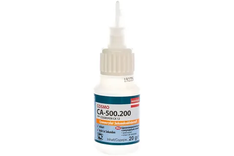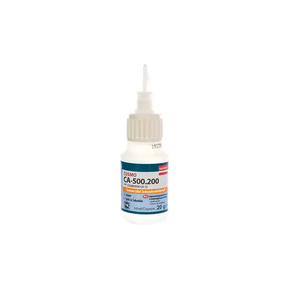Цианоакрилатный клей Cosmofen CA 500.210 фирмы «Weiss» Производство Германия Это однокомпонентный быстросохнущий цианоакрилатный клей, основанный на этиле. Он характеризуется быстрым действием, приклеивание занимает всего несколько секунд. Цианоакрилатный клей Cosmofen CA 500.210 имеет многостороннее применение. Рекомендуется его применение при трудно склеиваемых предметах. Цианоакрилатный клей Cosmofen CA 500.210 наносится на одну поверхность, затем прижимается к другой до момента склеивания. Для ещё более быстрого приклеивания рекомендуется использовать активатор.