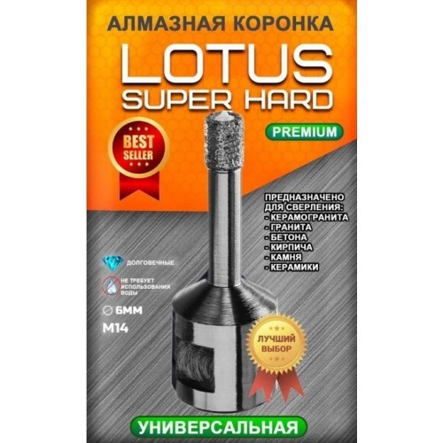 Коронка по керамограниту алмазная Lotus 6mm(трубчатое сверло)