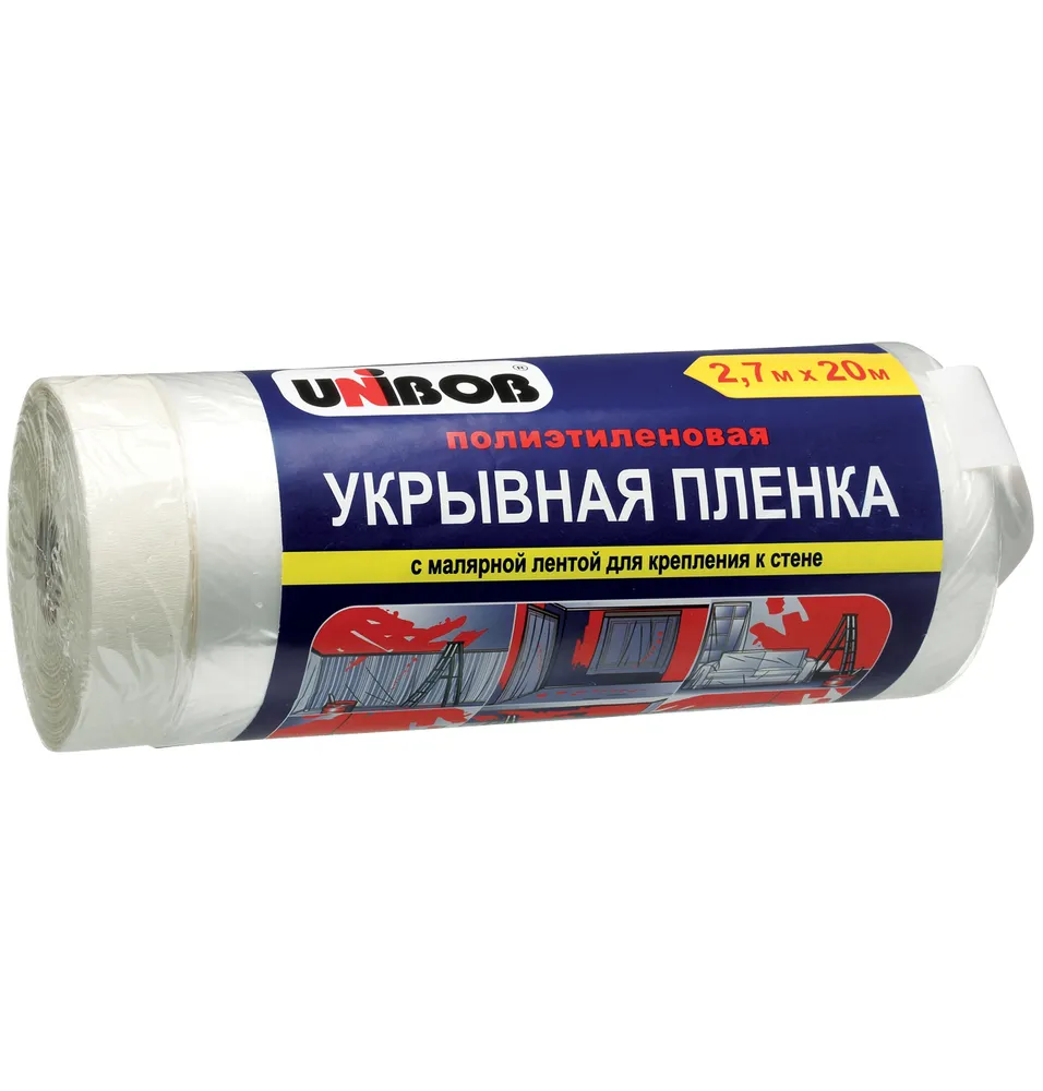 Плёнка укрывная с малярной лентой, выполненная из материалов высокого качества, от известного бренда UNIBOB в сфере производства высококачественных расходных материалов.