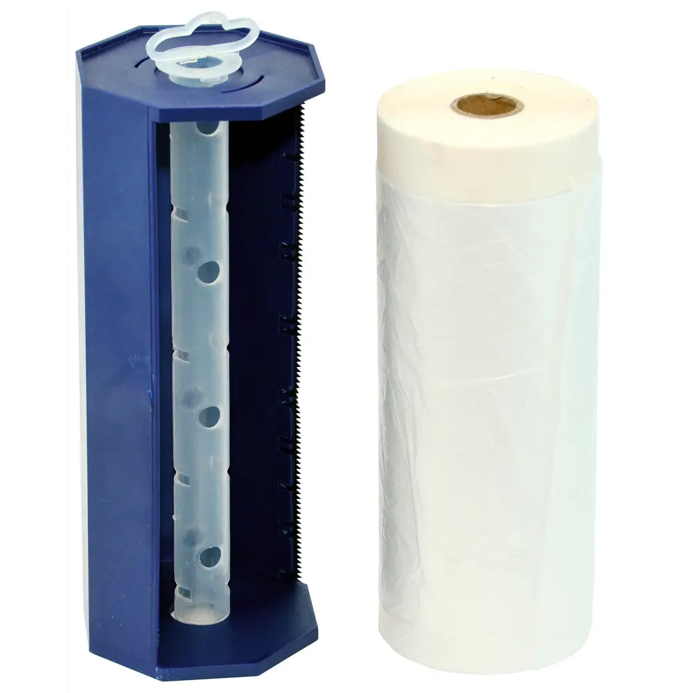 Укрывная плёнка с малярной лентой в диспенсере выполнена из прочного прозрачного полиэтилена толщиной 10 микрон. Материал надежно защищает предметы интерьера, стены и другие поверхности от грязи и пыли в процессе ремонтных работ или переезда. Пленка оснащена самоклеящейся малярной лентой для быстрой и надежной фиксации полотна к поверхности, что исключает забивание мусора под покрытие. Материал поставляется отрезками размером 20×2,7 м.