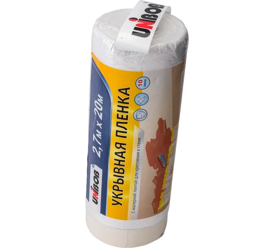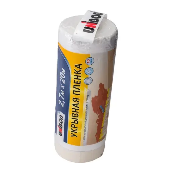 Пленка укрывная с малярной лентой UNIBOB 2,7м х 20м; 10 мкм прозрачная