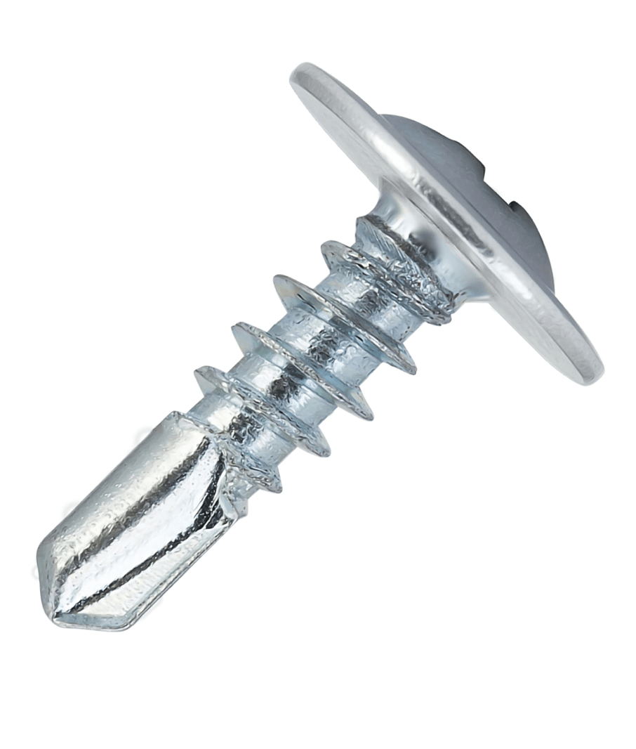 Саморез с пресшайбой и сверловидным наконечником, шляпка самореза выполнена в виде полукруглой головки на которую напресованна плоская шайба.