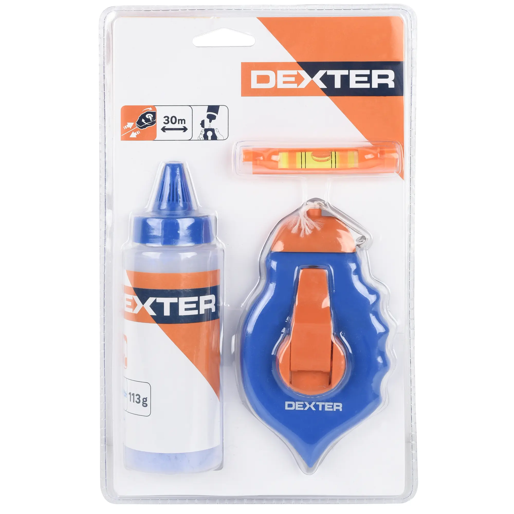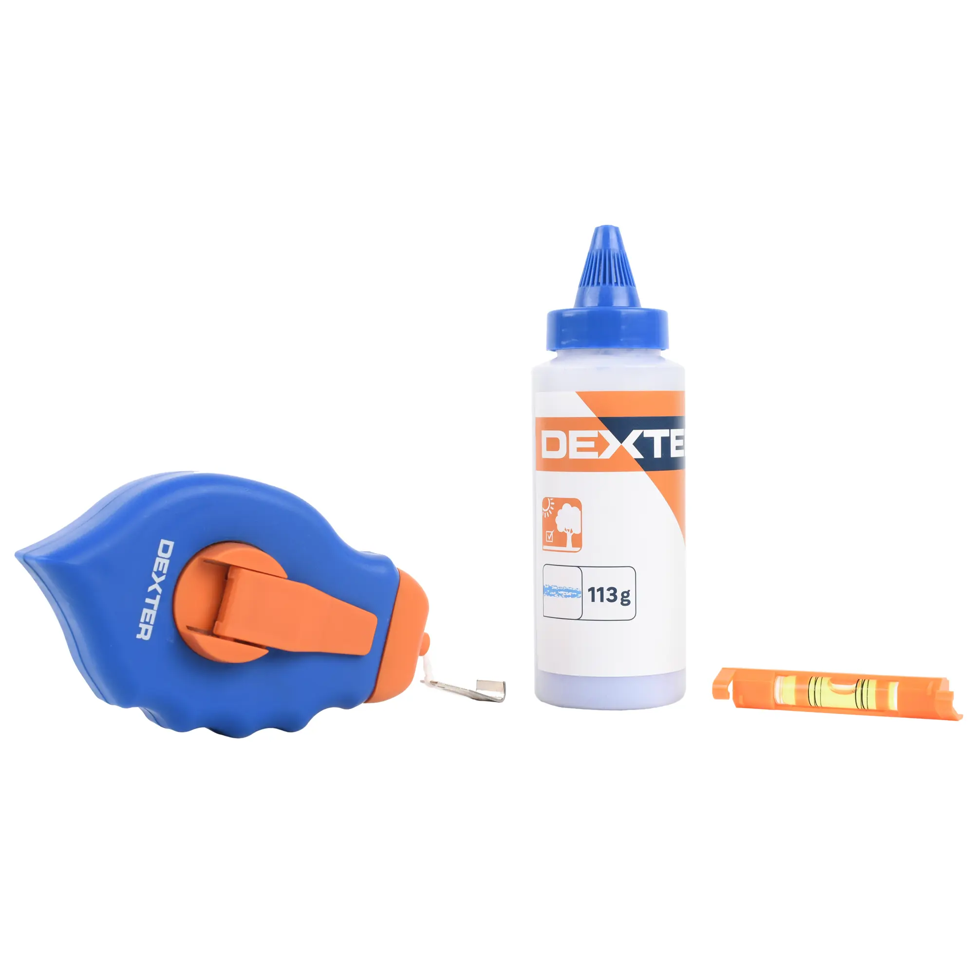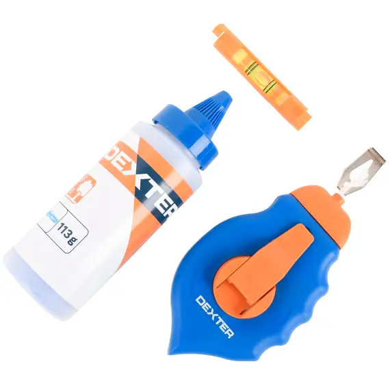 Набор для разметочных работ Dexter из трех предметов поможет быстро и удобно выполнить разметку на плоскости. Комплект прост и эффективен в использовании: шнур с красящим порошком оставляет четкую линию, которая легко удаляется с поверхности обычными моющими средствами после окончания работ.