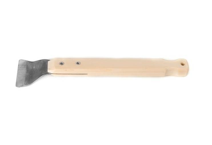 Лопатка для монтажа гарпуна в профиле, расположенном в нише за оконном карнизом. Позволяет мастеру избегать контакта со стеной.