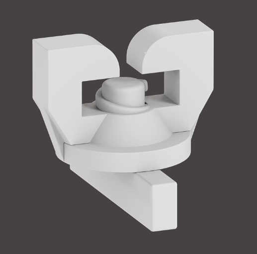 Стопор (тормоз) для карниза устанавливается в скрытую гардину и служит для ограничения движения крючков по направляющим. Он не дает крючкам выпасть из выемок при достижении края карниза. Благодаря особой форме он не выступает над поверхностью карниза, потому не портит внешний вид шины.